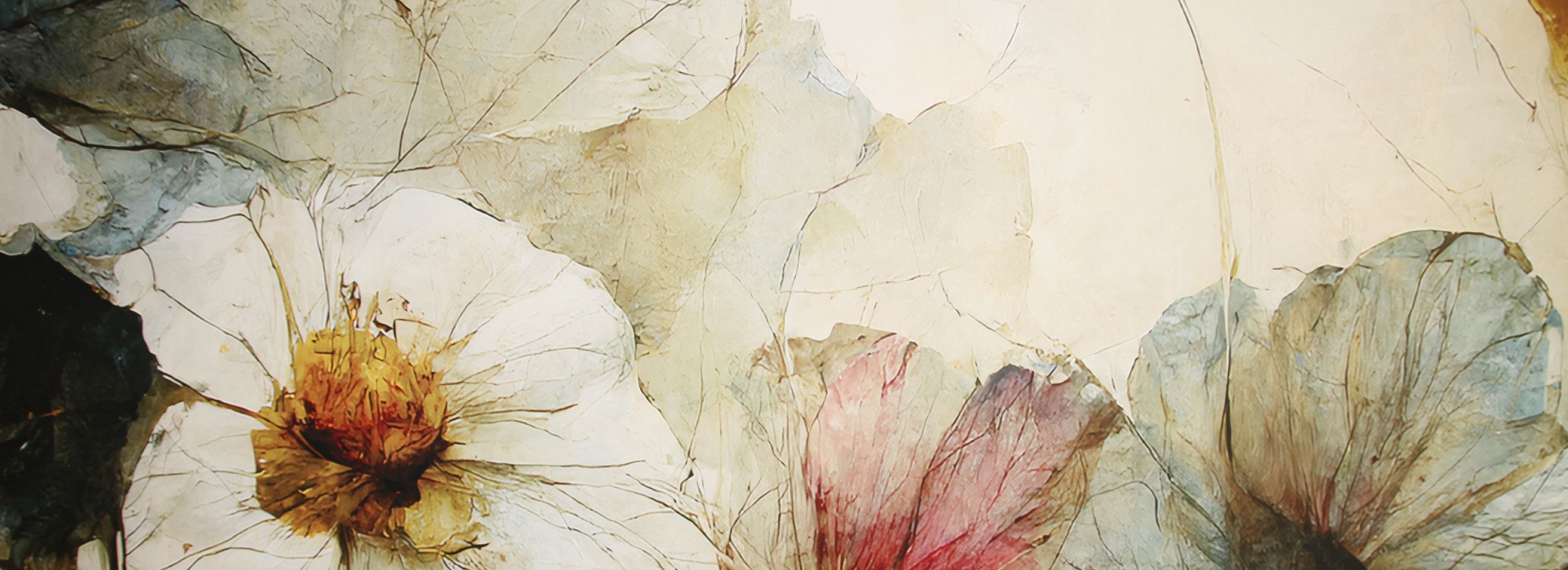 Eine Tapete mit Trockenblumen wird in einer lichtdurchfluteten Küche appliziert und fügt sich harmonisch in die Umgebung ein.