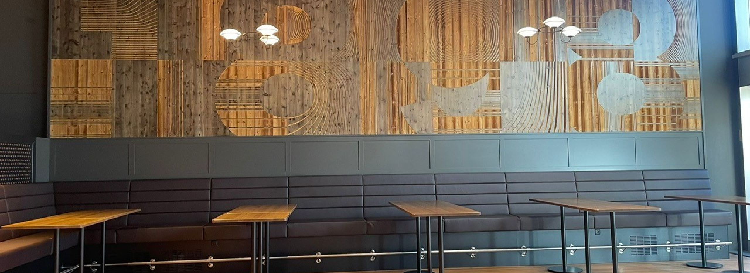 Die Holzwand wurde gebeizt und matt lackiert. Die Holzstrucktur ist wunderschön erkennbar.