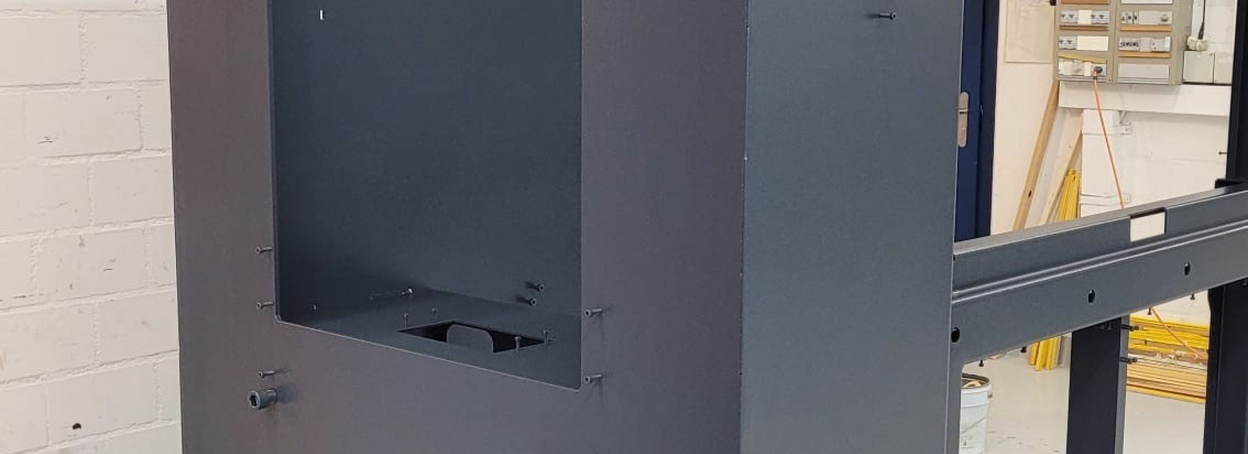 Die Beschichtung von Maschinenteilen einer Metalldruckpresse wird mit Struckturlack gespritzt.