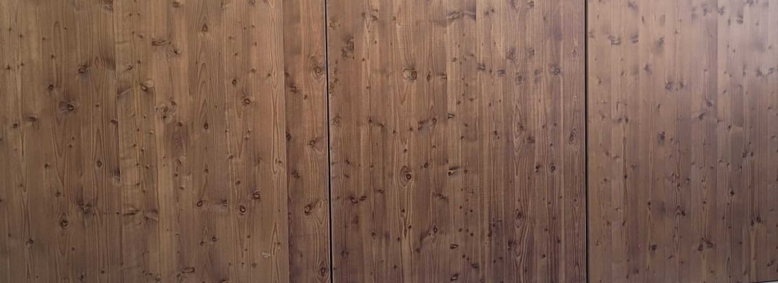 Die Holzwand wurde gebeizt und matt lackiert. Die Holzstrucktur ist wunderschön erkennbar.